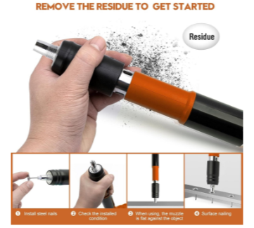 Daca apare nu poate functiona, va rugam sa stergeti reziduul inainte de a incerca cateva unghii. Amortizor dublu si indepartare convenabila a zgurii: Acest mini pistol de cuie care utilizeaza otel ingrosat si gauri de amortizor de cauciuc de inalta calitate, a fost testat de mii de ori, reducand zgomotul, nu deranjeaza oamenii si facand mediul de constructie mai confortabil.