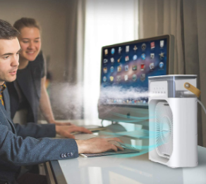 Creeaza-ti o zona personala de confort! Nu este doar un racitor personal de aer, ci si un umidificator de aer. Puteti utiliza acest mic racitor evaporativ de aer pe tot parcursul anului, racorindu-va in vara calda si umidificand aerul in toamna si iarna uscata.